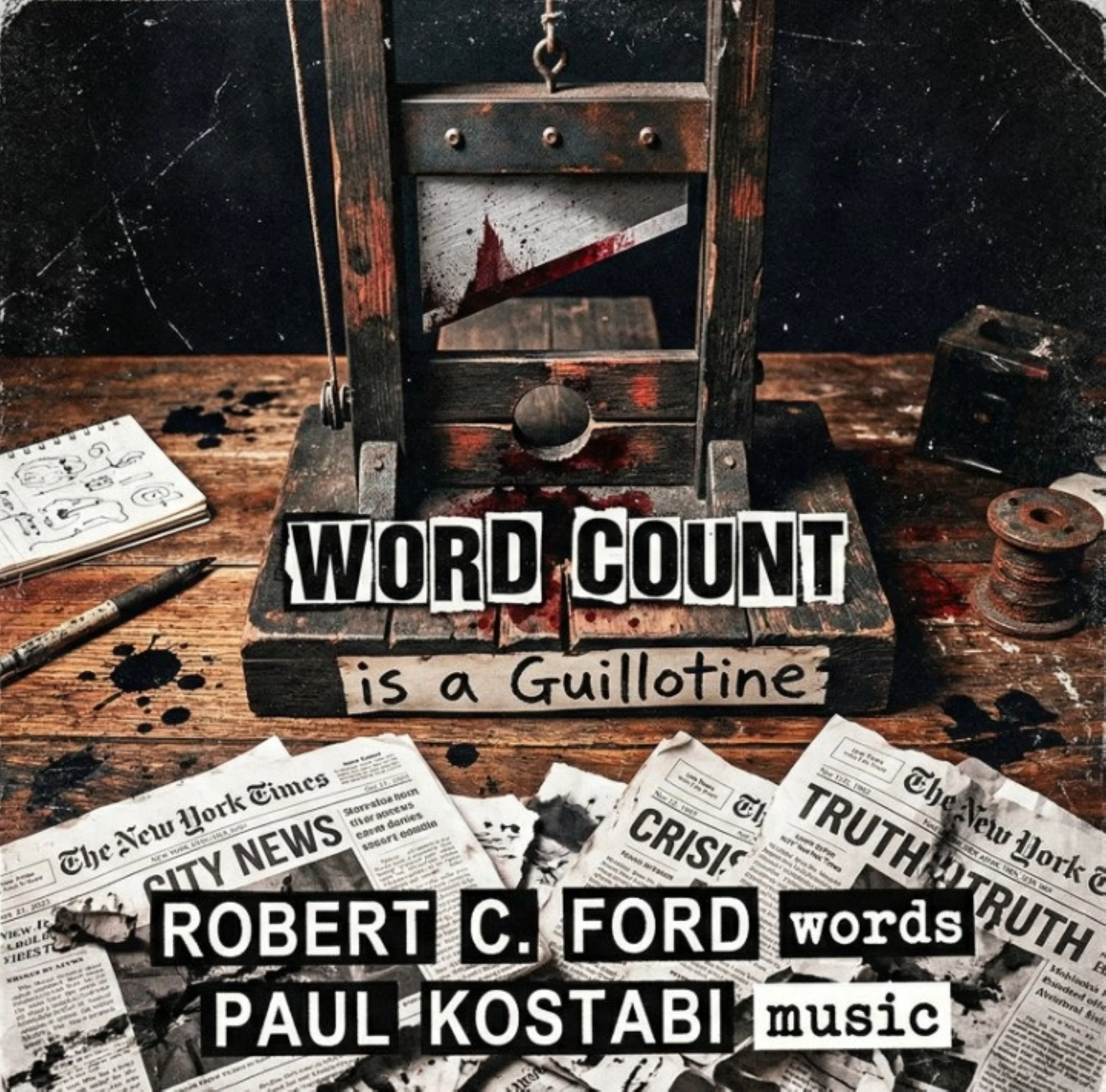 The track unfolds like a Downtown monologue delivered from a bar stool at 2 a.m. Ford’s voice stays calm, almost amused, as he recounts the absurdity: "the article carefully named every composer and musician...but the poet was left unspoken". The refrain, “word count is a guillotine”, turns editorial economy into a surprisingly vivid metaphor for cultural gatekeeping.